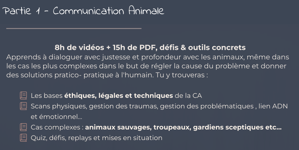 - Tu es pro de santé ergonomie ou comportement animalier et tu veux rajouter ces outils à ton arc avec une apporche complète, en profondeur et des liens scientifiques/énergétiques expliqués