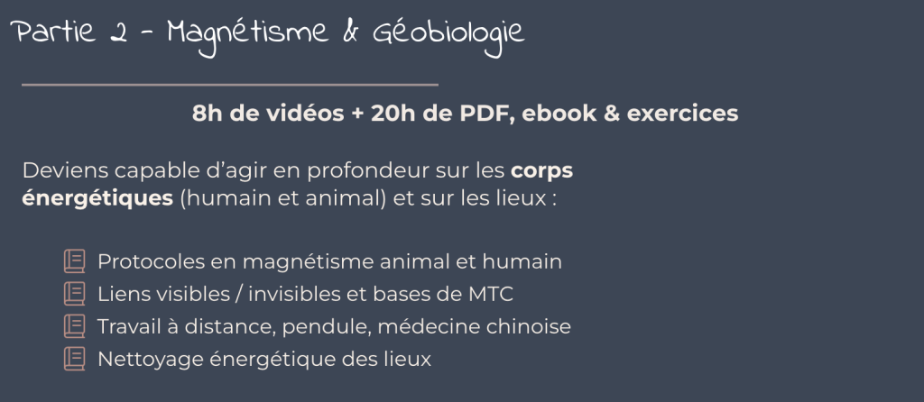 Communication animale, Magnétisme, Géobio, Mindset)